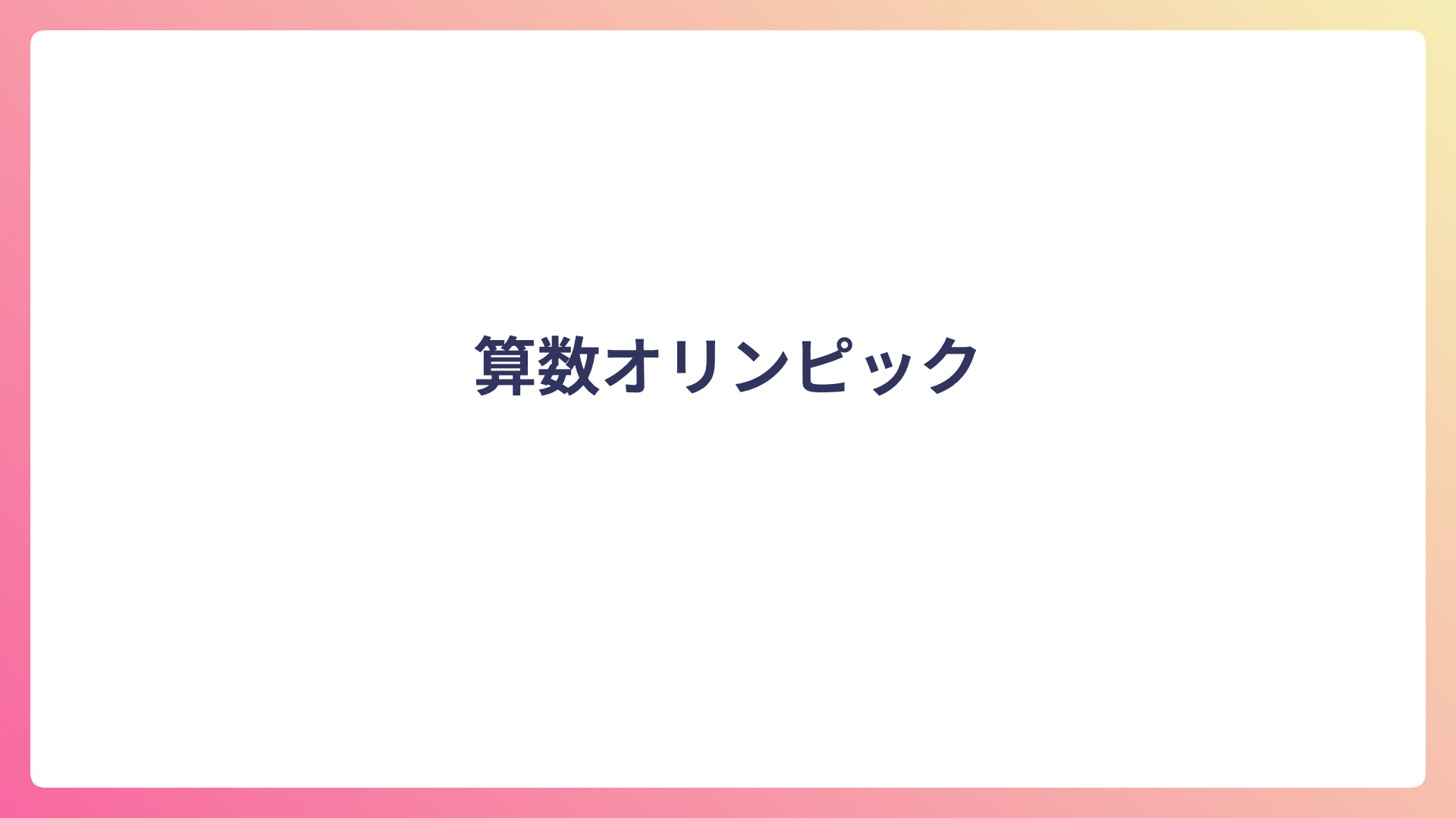 算数オリンピック furuyaman 算数を楽しむことが学びの第一歩。大阪府高槻市にあるマスラボでは算数オリンピックの問題を通じて、考える力と発想の柔軟さを育てています。 目次 算数オリンピックとは?小学生でも楽しめる思考力の世界(準備中)算数オリンピックの概要出題の特徴(パズル的な問題・思考力重視)参加するメリット過去問から学ぶ!発想を広げる面白い問題3選(準備中)問題紹介(例だけ載せる)解くときの発想法学びにつながるポイント算数オリンピックに挑戦するメリット(準備中)勉強の「楽しさ」を知る学校算数との違い将来の学びへのつながり算数オリンピックとは?小学生でも楽しめる思考力の世界(準備中) 算数オリンピックの概要 出題の特徴(パズル的な問題・思考力重視) 参加するメリット 過去問から学ぶ!発想を広げる面白い問題3選(準備中) 問題紹介(例だけ載せる) 解くときの発想法 学びにつながるポイント 算数オリンピックに挑戦するメリット(準備中) 勉強の「楽しさ」を知る 学校算数との違い 将来の学びへのつながり
